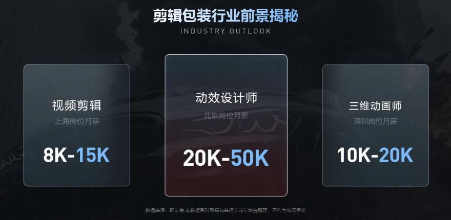 數字創意產業蓬勃發展,影視剪輯包裝領域人才缺口巨大。短視頻、廣告、綜藝、游戲等多個行業,都急需專業的剪輯包裝人才。無論是成為短視頻剪輯師、廣告導演,還是綜藝的視頻特效包裝師,都有廣闊的發展空間。而且,這個行業的薪資待遇也相當可觀,只要你有能力,高薪觸手可及。